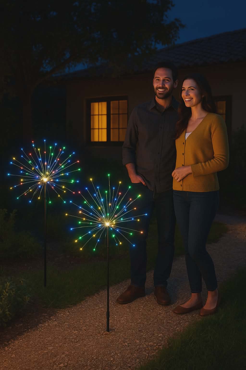 Creative solar garden lights: Each solar lamp adopts flexible and high-quality copper wires. You can flexibly DIY any shape, such as flowers, trees, fireworks, Ferris wheel, heart, spiral, sphere. These solar fireworks lights are decorated with colorful lights and are perfect for your garden, yard, lawn, flower beds, terraces, sidewalks, and driveways.